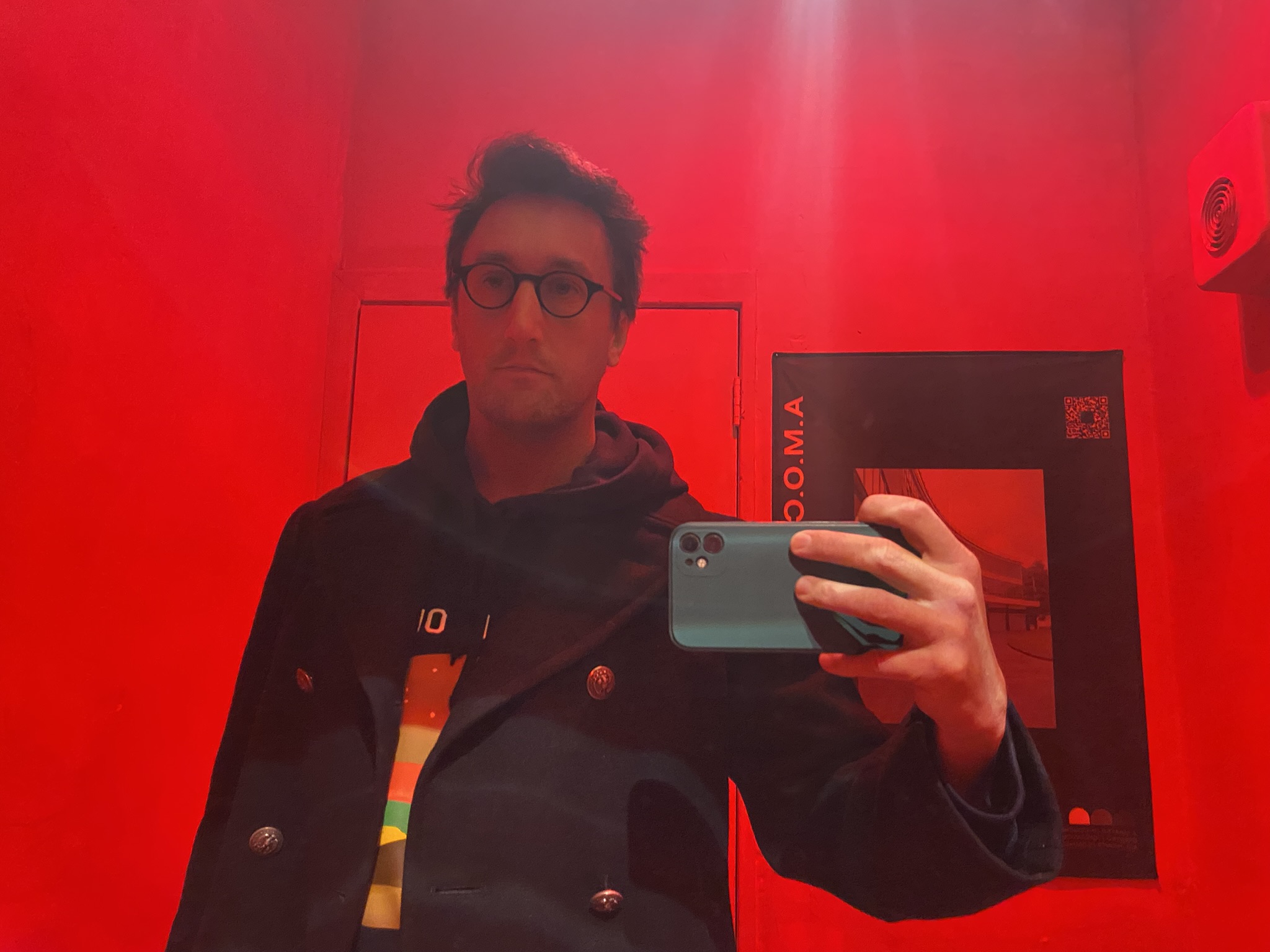 Here’s a picture of me in the bathroom of a new local coffee spot called Amulet.